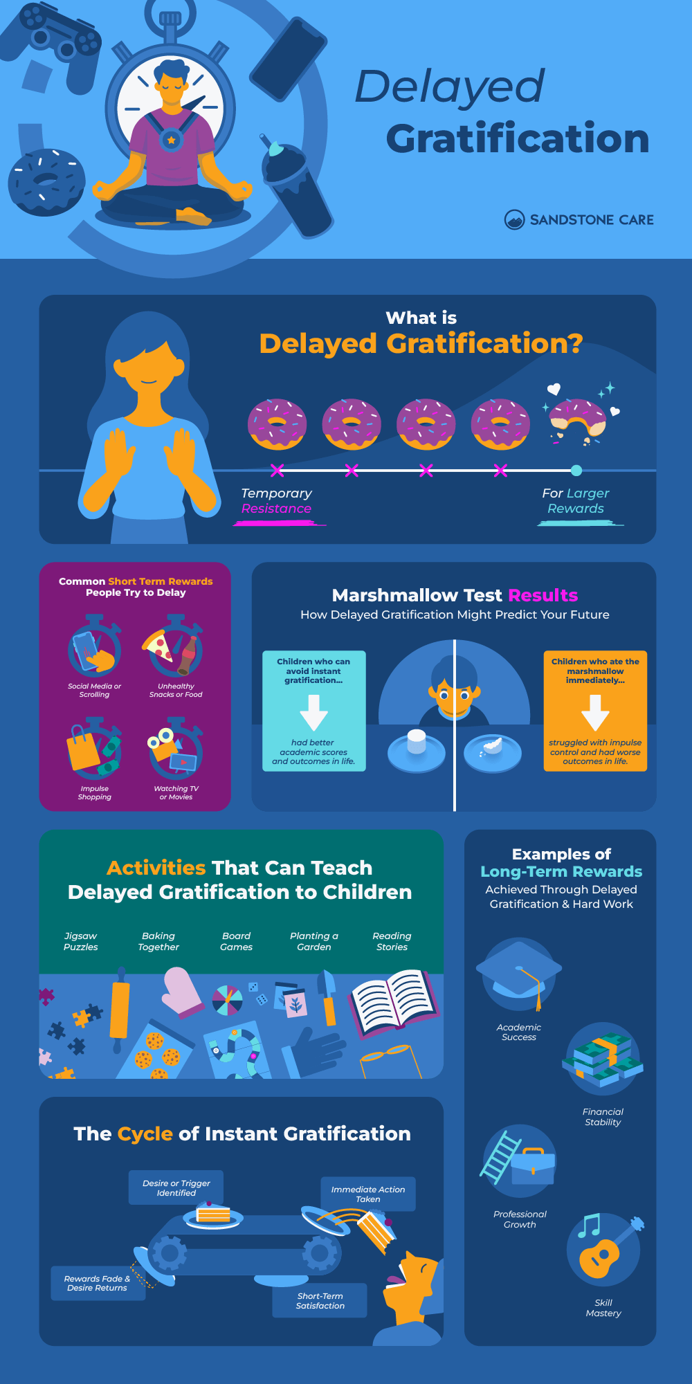 Delayed gratification can help people improve their self-control and achieve their long-term goals.