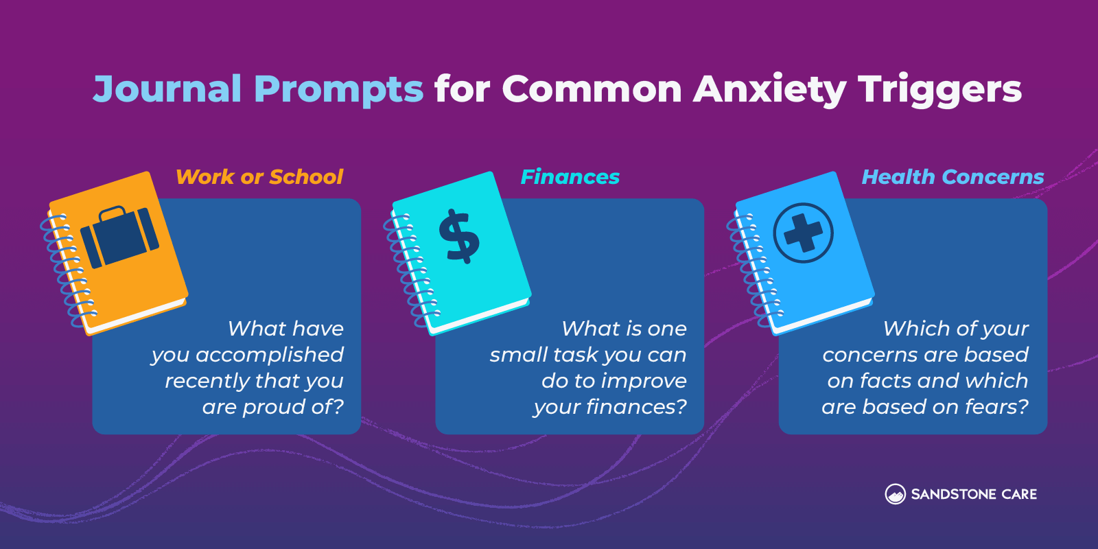 For anxiety, you can write down specific things that cause you to feel anxious (triggers), and you can also write down how the anxiety made you feel and what helped you to come out of it.